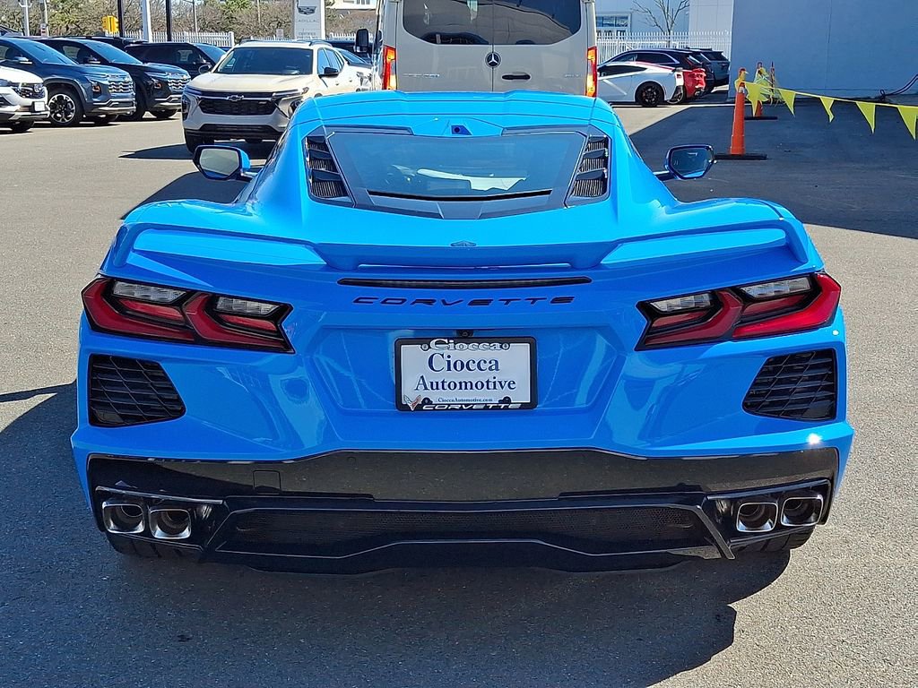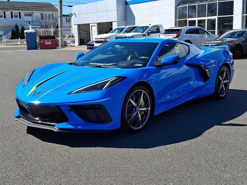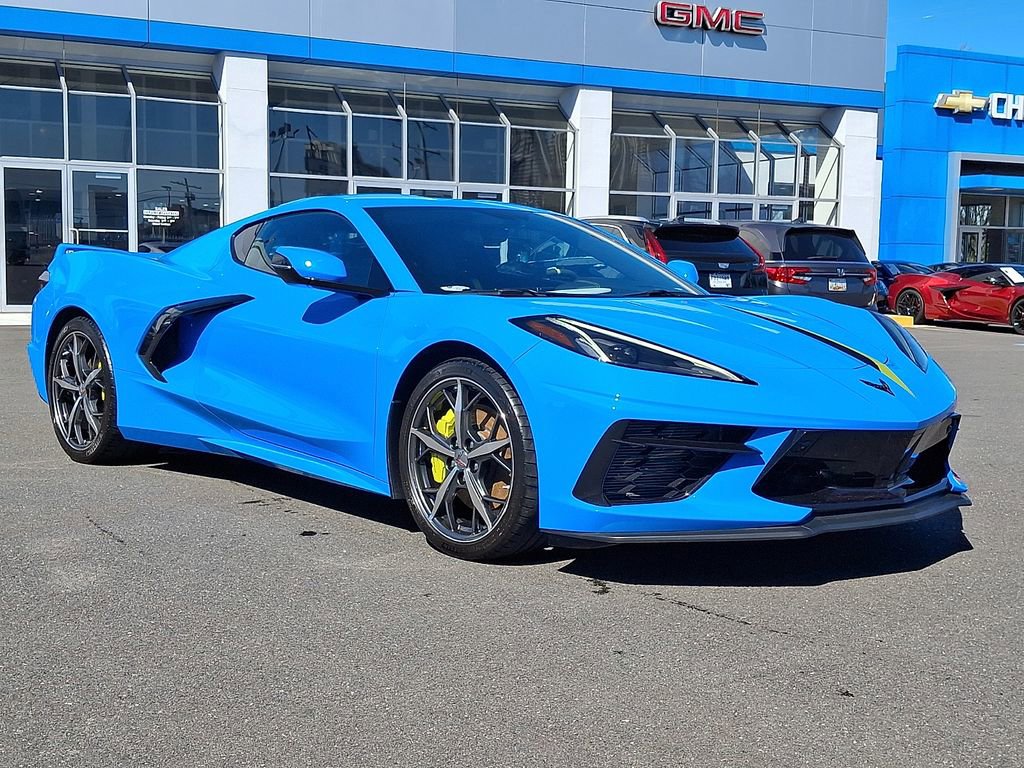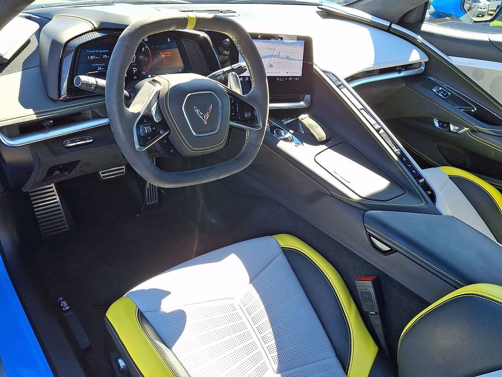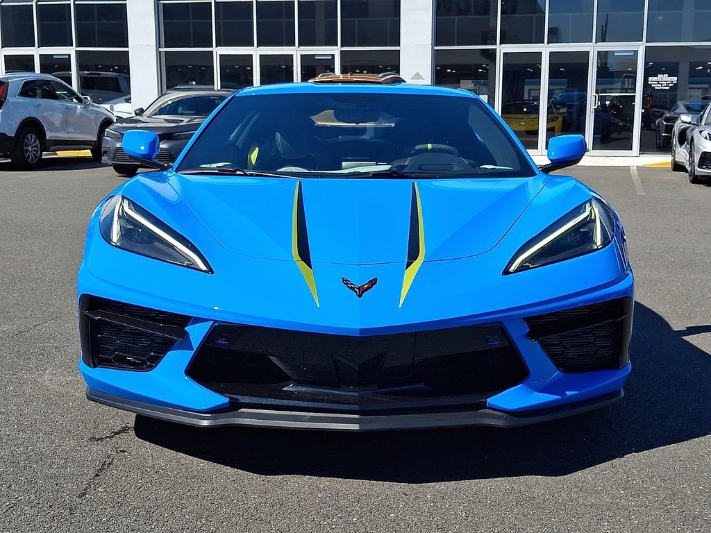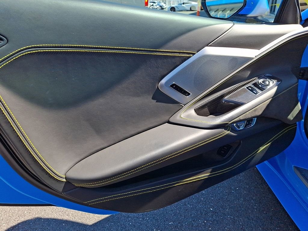 This Corvette Stingray 3LT is more than just a sports car - it's a work of art. Its striking Rapid Blue exterior, complemented by the Carbon Flash/Edge Yellow Stinger Stripe, exudes confidence and style. Step inside the luxurious cabin, where you'll be enveloped in the comfort of Napa leather seating with perforated inserts, heated and ventilated for your ultimate driving pleasure.