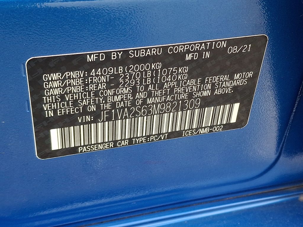 Experience the exhilarating performance and exceptional craftsmanship of the 2021 Subaru WRX STi. This dynamic sports car is designed to thrill, with its powerful 2.5L DOHC Intercooled High Boost Turbocharged engine, close-ratio 6-speed manual transmission, and Subaru's renowned Symmetrical All-Wheel Drive system. Boasting a striking WR Blue Pearl exterior and a host of premium features, this WRX STi is the ultimate expression of Subaru's performance heritage.