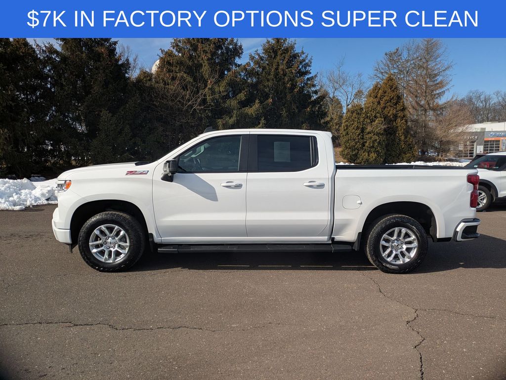 Beyond its impressive capabilities, this Silverado RST exudes a bold, confident presence on the road. The striking white exterior, complemented by the black tubular assist steps and chrome accents, creates a striking visual statement. Step inside and you'll be greeted by a spacious, well-appointed cabin that seamlessly blends comfort and technology.